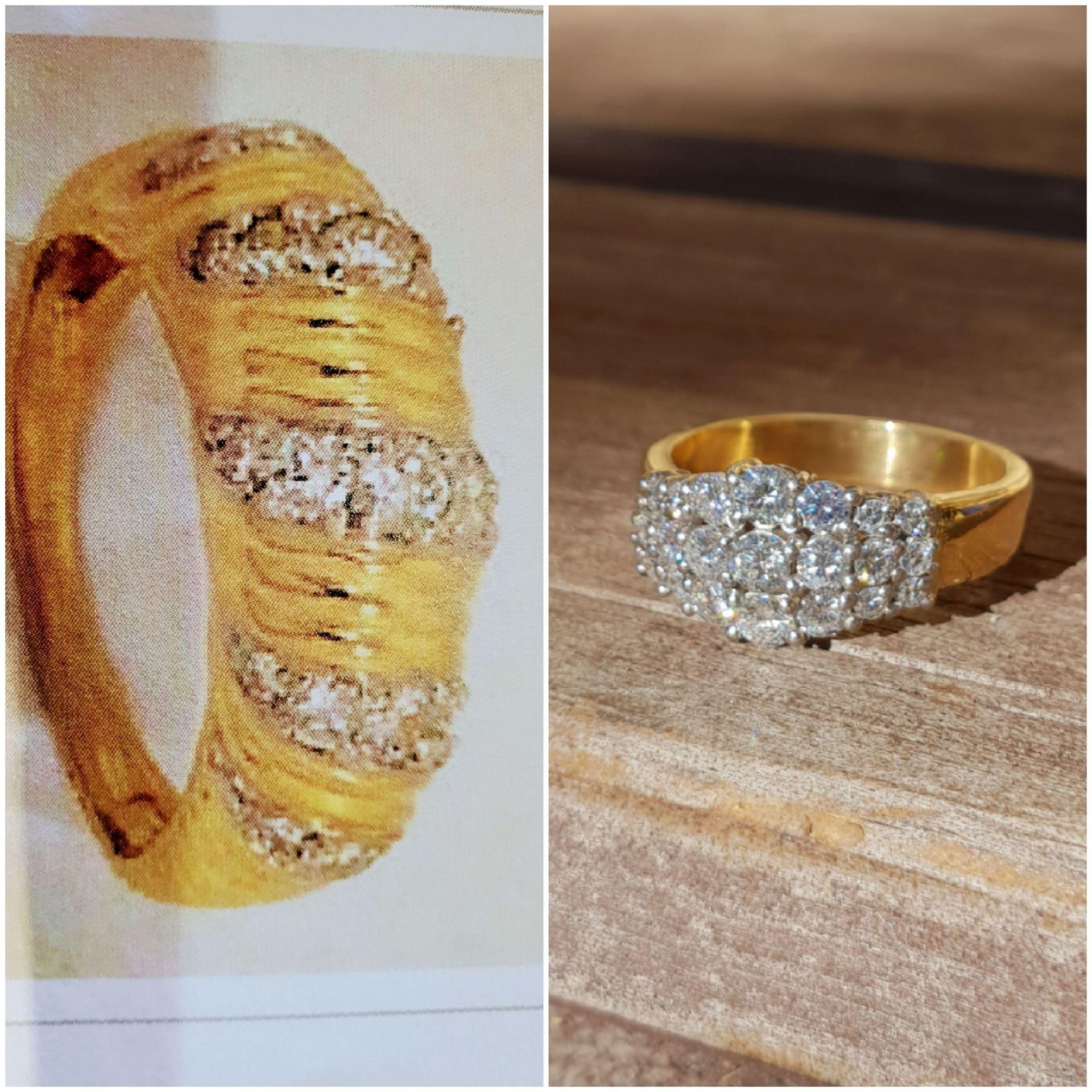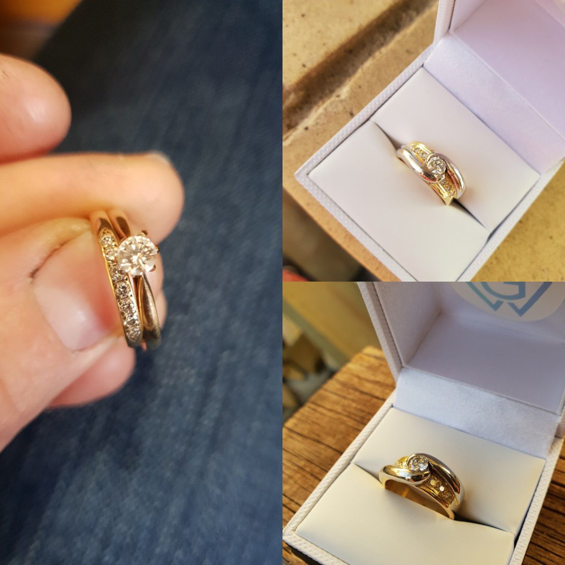 We are able to re-use the materials by melting down gold and carefully extracting diamonds or other gemstones, the original sentiment of the piece is retained.